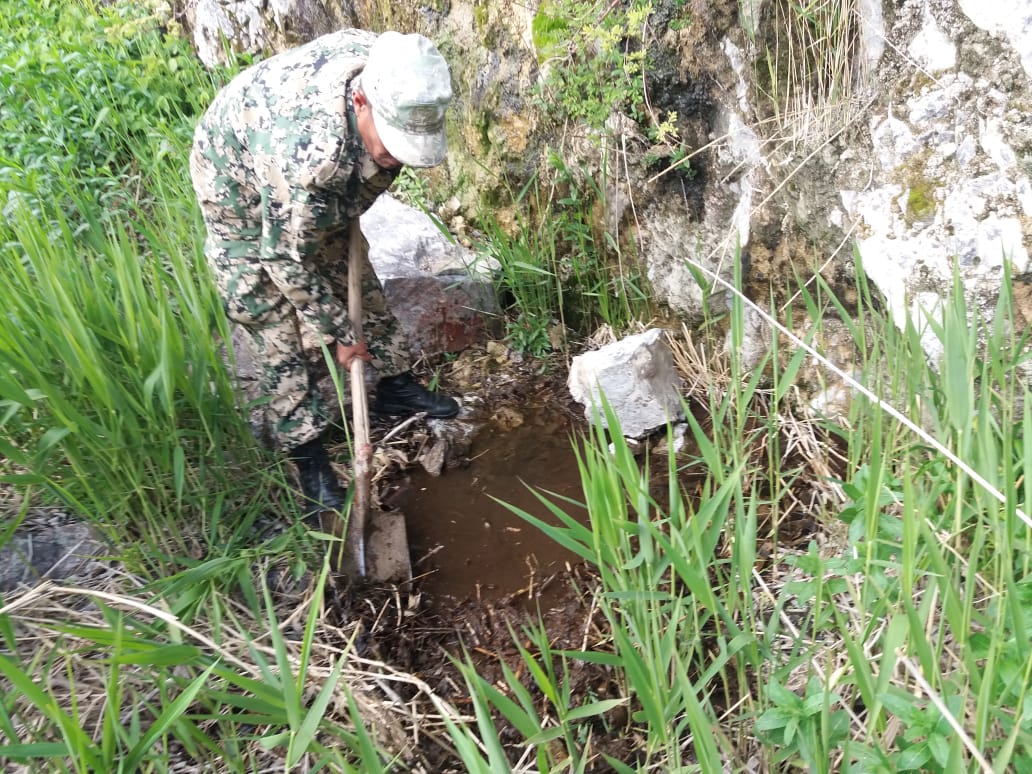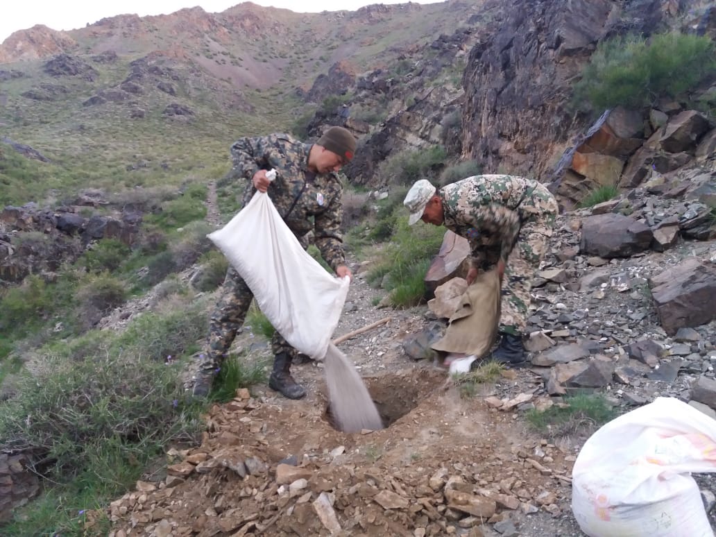 Biotechnical events are being held at the SNNP “Altyn-Emel” : salt laying in the mountainous areas of the park and cleaning of watering places.
