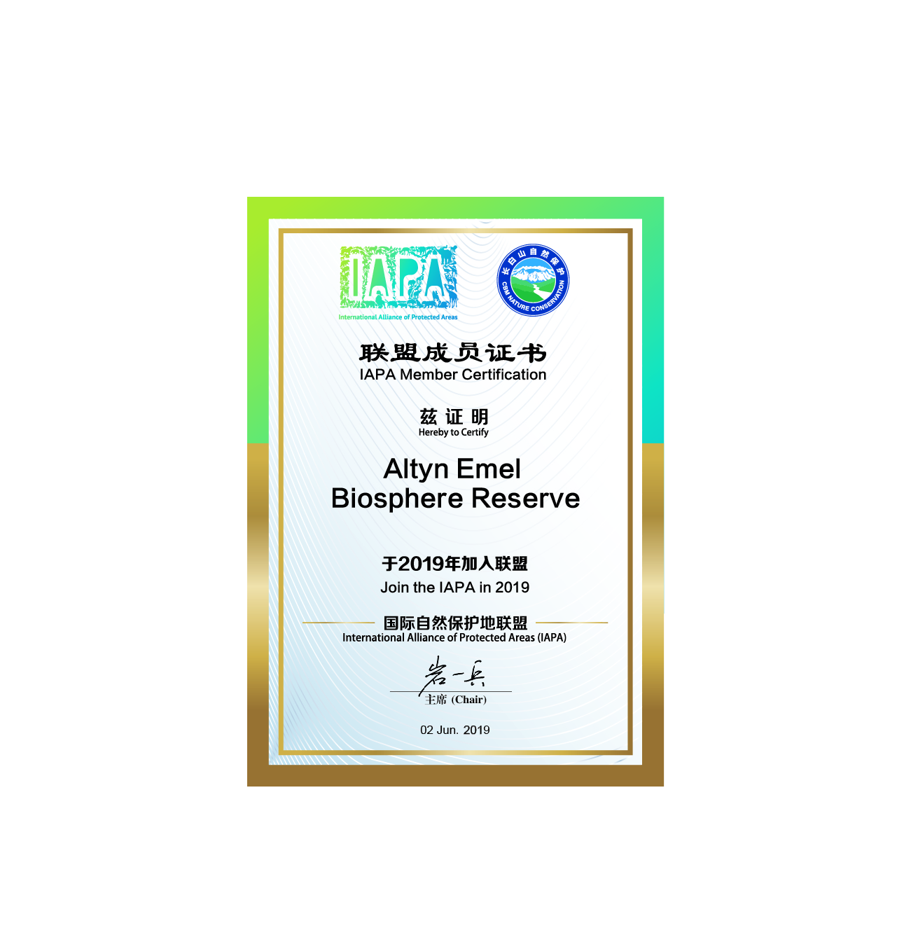 2019 жылдың маусым айында ұлттық парк Ерекше қорғалатын табиғи аумақтардың халықаралық альянсы (International Alliance of Protected Areas IAPA) құрамына кірді. Қазіргі таңда Қазақстаннан осы ұйымның жалғыз мүшесі болуда.