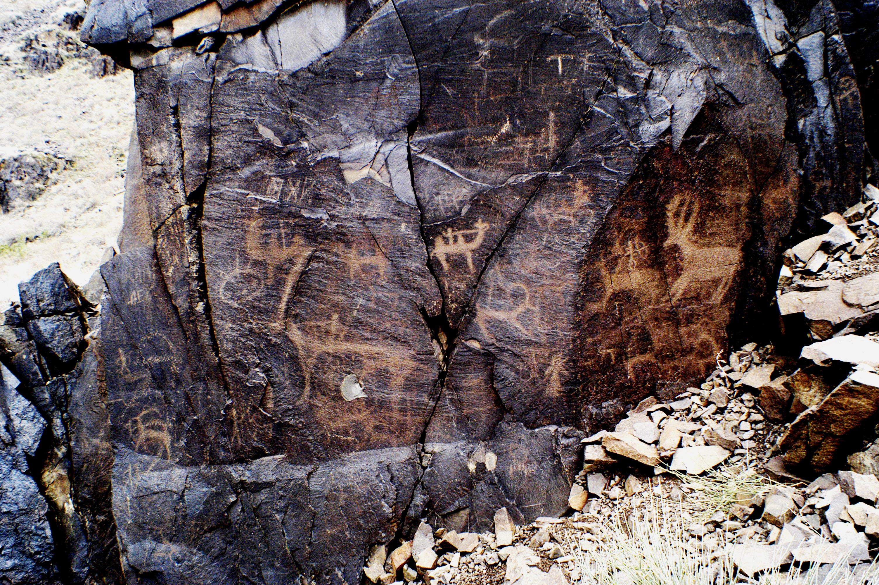 Теректі шатқалының ортағасырлық бейнелері салтатты, бірнеше жаяу жүргіншілер мен тау ешкі бейнеленген. Жекеленген блоктарда жаңа этнографиялық кезеңнің сызбалары бейнеленген. Аңшылық өнерінің кейбір бейнелері және кейбір жануарлардың жекеленген суреттері кездеседі. Аң аулау өнері бейнеленген петроглифтердің бірінде аңшының қосаяқты мылтықпен тау ешкіні атқанын көруге болады, мұндай қару Қазақстанда 17 ғасырдың ортасынан бастап пайда болды. Шатқалдың екі шақырым жоғары жағында бұғы және қабан секілді жануарлардың ерте темір дәуірінде қашалған петроглифтердің бір тобы кездеседі. Петроглифтердің шатқалдың сағасында орналасуы кездейсоқ емес, шатқалдың төменгі тұсында және құрғақ өзен жағасында ерте темір дәуірінен үйсін дәуіріне дейінгі қорымдар бар. Б.з.д. 1 мыңжылдықта бұл аумақта көшпелілер тығыз қоныстанған. Қазба жұмыстарының материалдары бойынша бұл қорымдар біздің дәуірімізге дейінгі 1 мыңжылдықтан - біздің дәуіріміздің басы және біздің дәуірімізге дейінгі 4 ғасырға жатады.