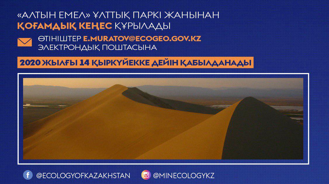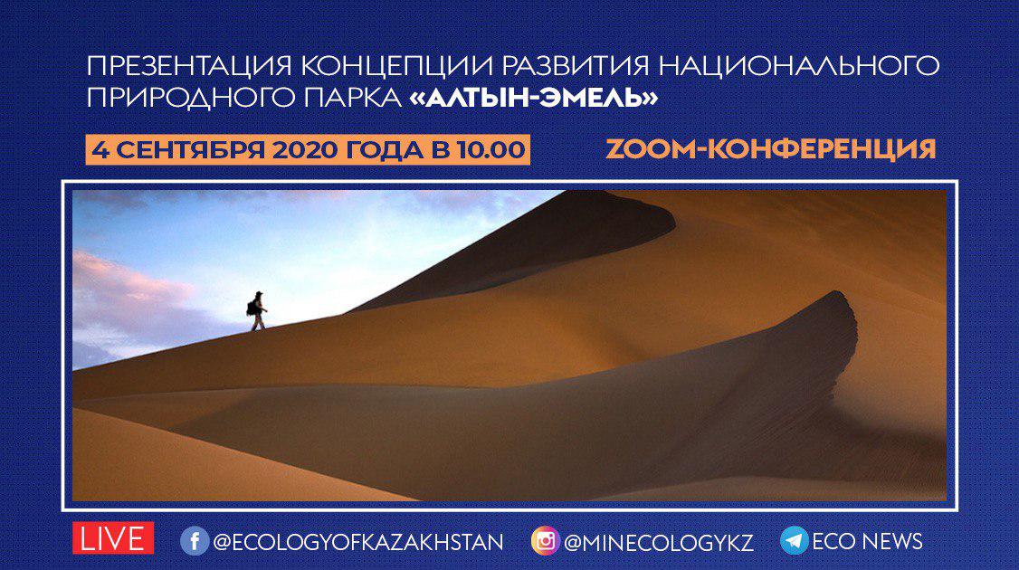 4 сентября 2020 года в 10.00 в формате открытой zoom-конференции пройдет презентация общественности концепции развития государственного национального природного парка "Алтын-Эмель".