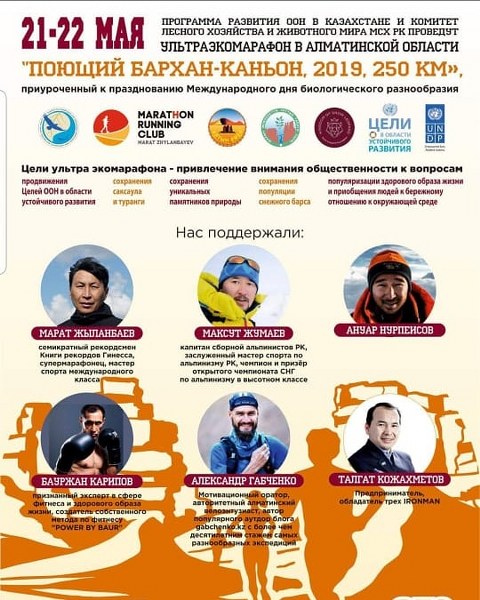 21-22 мая 2019 года в рамках экологической акции «Марш парков - 2019» в честь Международного дня биологического разнообразия (отмечаемого во всем мире 22 мая) на территории ГНПП «Алтын-Эмель» состоялся ультраэкомарафон от «Поющего бархана» до Чарынского каньона 250 км. Количество участников всего составило 85 человек, из них 20 марафонцев.