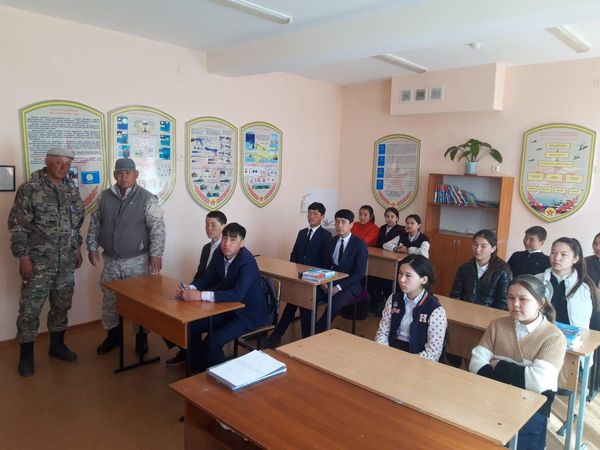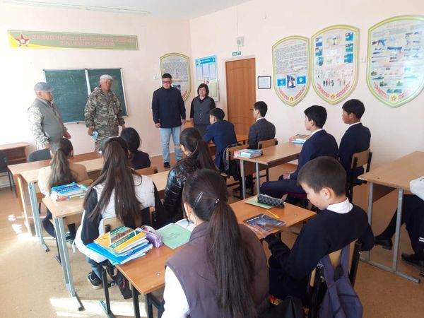 Государственные инспекторы Байжумаев К., Несипбеков М., Жуманов Э., Мусалимов Э., Нурпейсов А. Аманбаевская средняя школа села Ынталы и Айдарлинская средняя школа Панфиловского района провели урок по пожарной безопасности